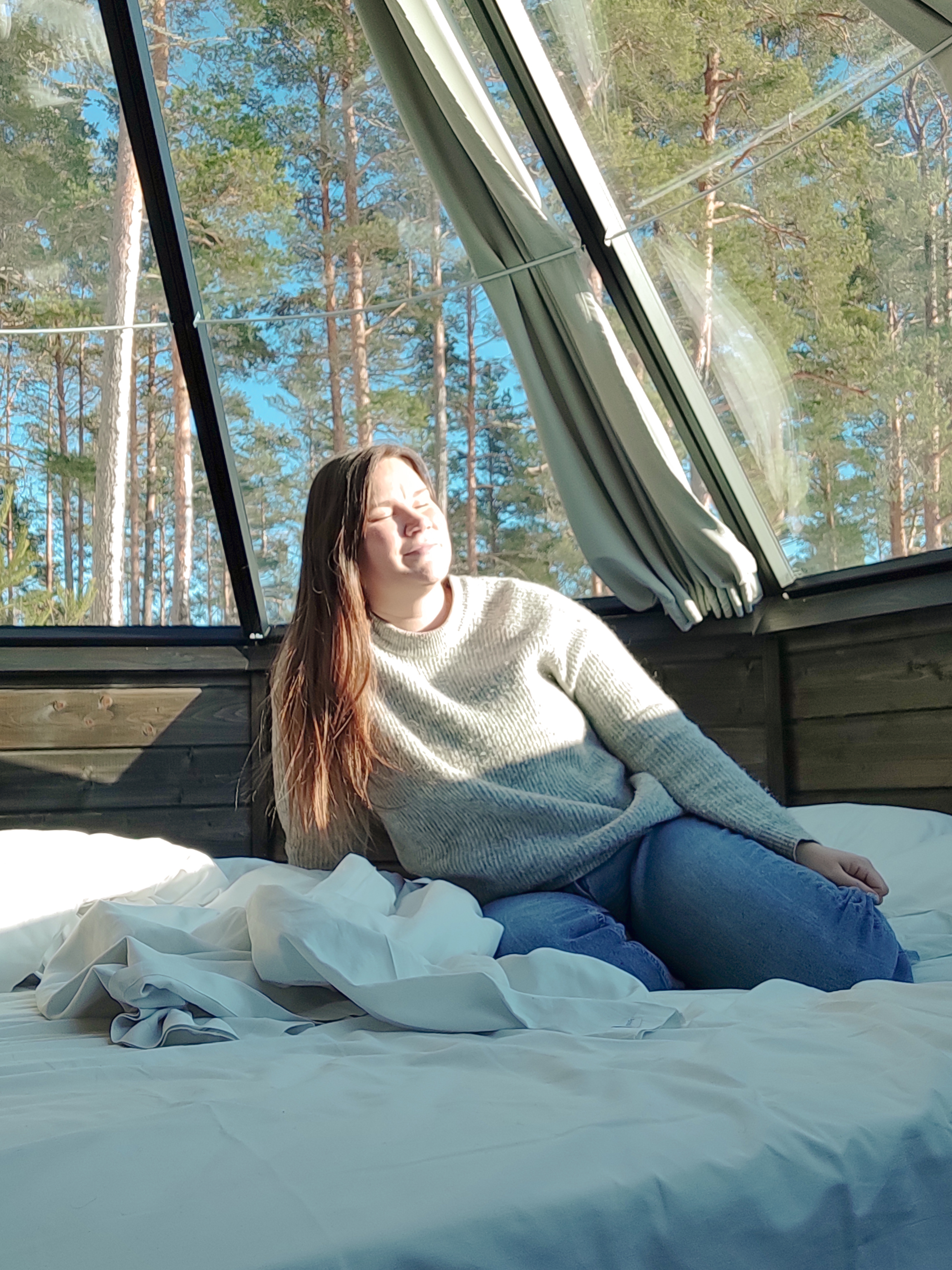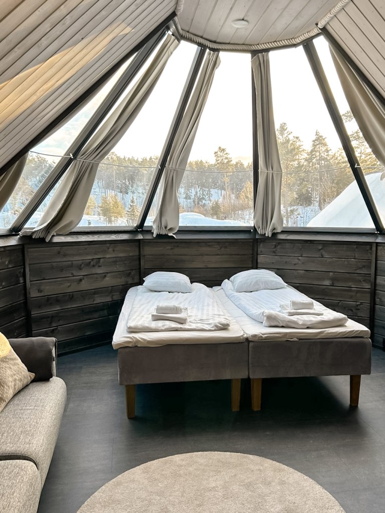 Nauvon kylältä eteenpäin ajettaessa pääsee Tackgårdin, jossa on upeaa vierailla myös talvella. Itse olen käynyt Tackgårdissa vain talvella, jolloin majoituimme tunnelmallisessa lasi-iglussa pakkasen paukkuessa mökin ulkopuolella. Lasikaton läpi oli taianomaista ihastella kirkasta tähtitaivasta ja kaiken kruununa tähdenlentoa. Revontulet olisivat olleet täällä varmasti mielettömät, kun valosaaste ei ole sotkemassa luonnon omia näytöksiä. Tackgårdissa on oma ravintola, jonka illallisesta ja aamiaisesta pääsee nauttimaan myös yöpyessä paikan päällä. Rantasauna tarjoaa pehmeät löylyt, joista on hyvä kipaista kesällä mereen uimaan, talvisin pääsee paljuun löllöttelemään.